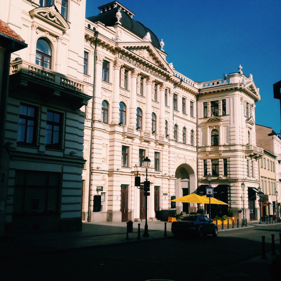 Потом я нашла Торговый центр по проспекту Гедемина. Это стала моя любимая улица. Там вся толпа людей и туристов. Покупала еду в супермаркете RIMI. Там нормальные цены, есть и кофе и выпечка, что душе угодно) А рядом столики, за которыми можно покушать.